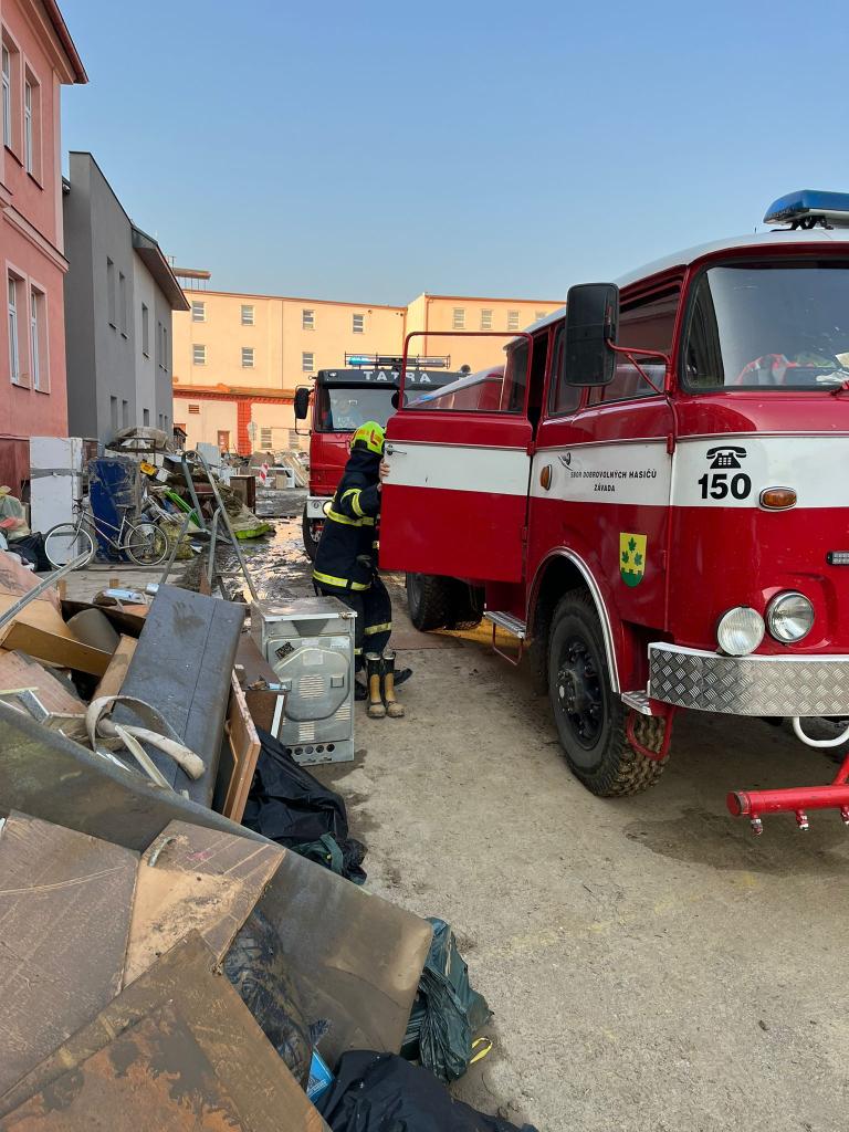 V pátek 19. září byla naše činnost odlišná. Pomocí dvou hasičů s dopravním automobilem jsme zajišťpvali rozvoz humanitání pomoci během celého dne od 7 do 19 hodin. Jednalo se o převoz dezinfekčních prostředků, nářadí, jídla apod.